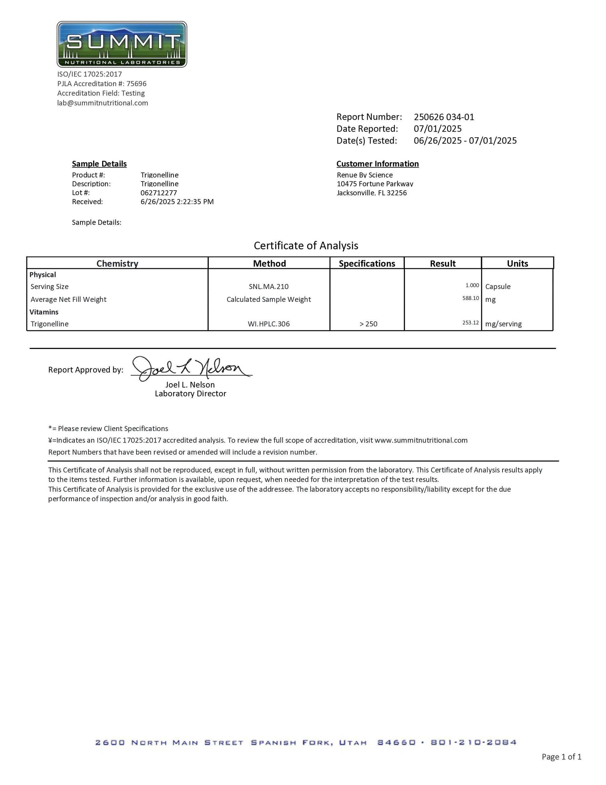 Trigonelline’s bioavailability and ability to cross the blood-brain barrier enable it to exert systemic benefits, supporting cognitive, cardiovascular, and metabolic health. It supports in glucose regulation by enhancing insulin receptor signaling and facilitates lipid management by influencing key enzymes in lipid metabolism.