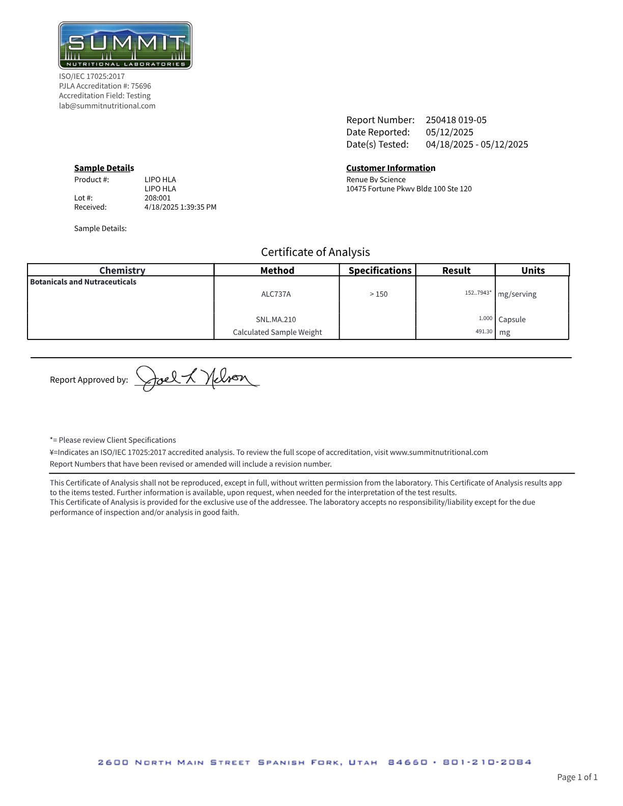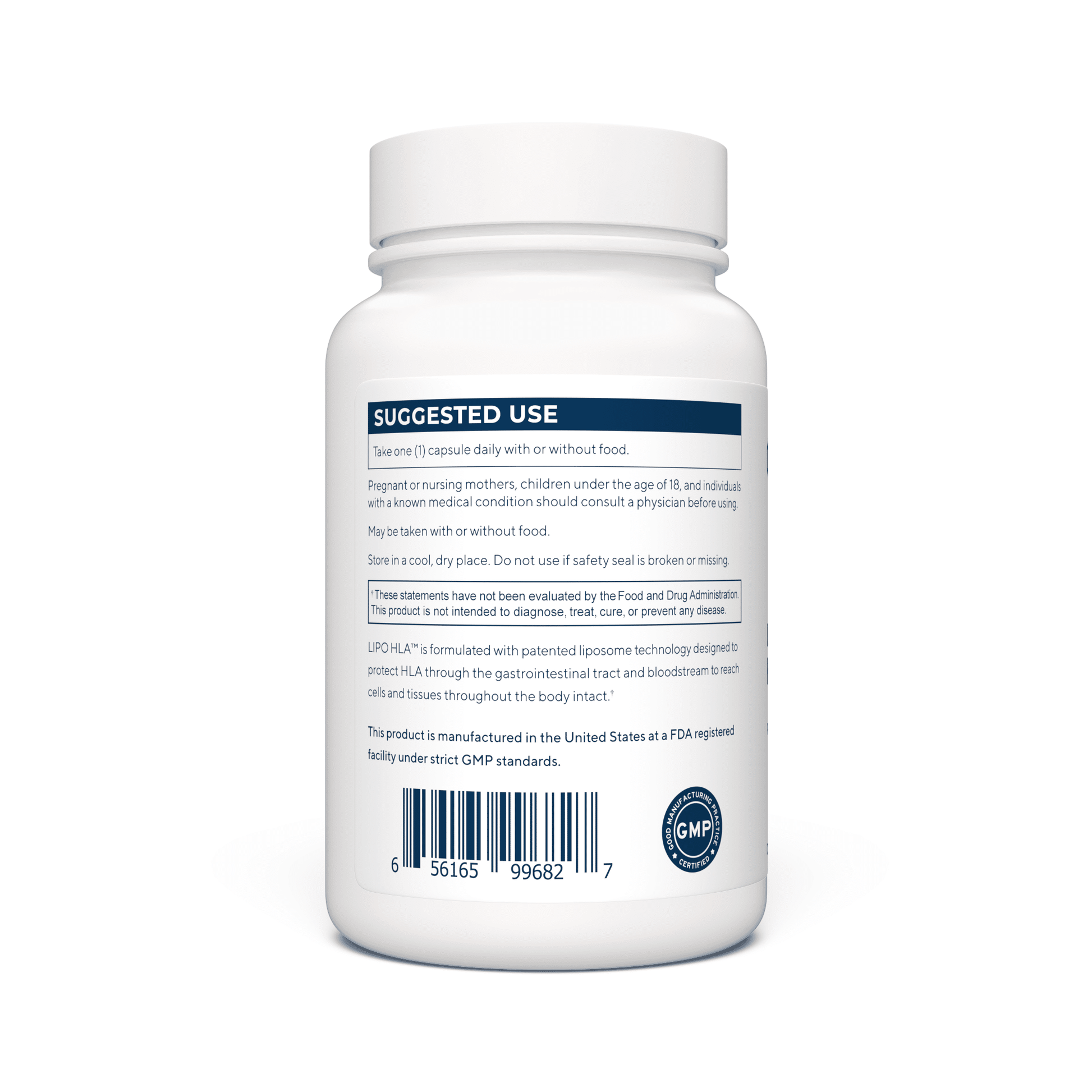 Animal studies indicate a bioavailability of less than 1%.† (2) To address this issue, LIPO HLA uses an advanced liposomal delivery system designed to improve the bioavailability, created for better absorption, and a slower release into the bloodstream.†