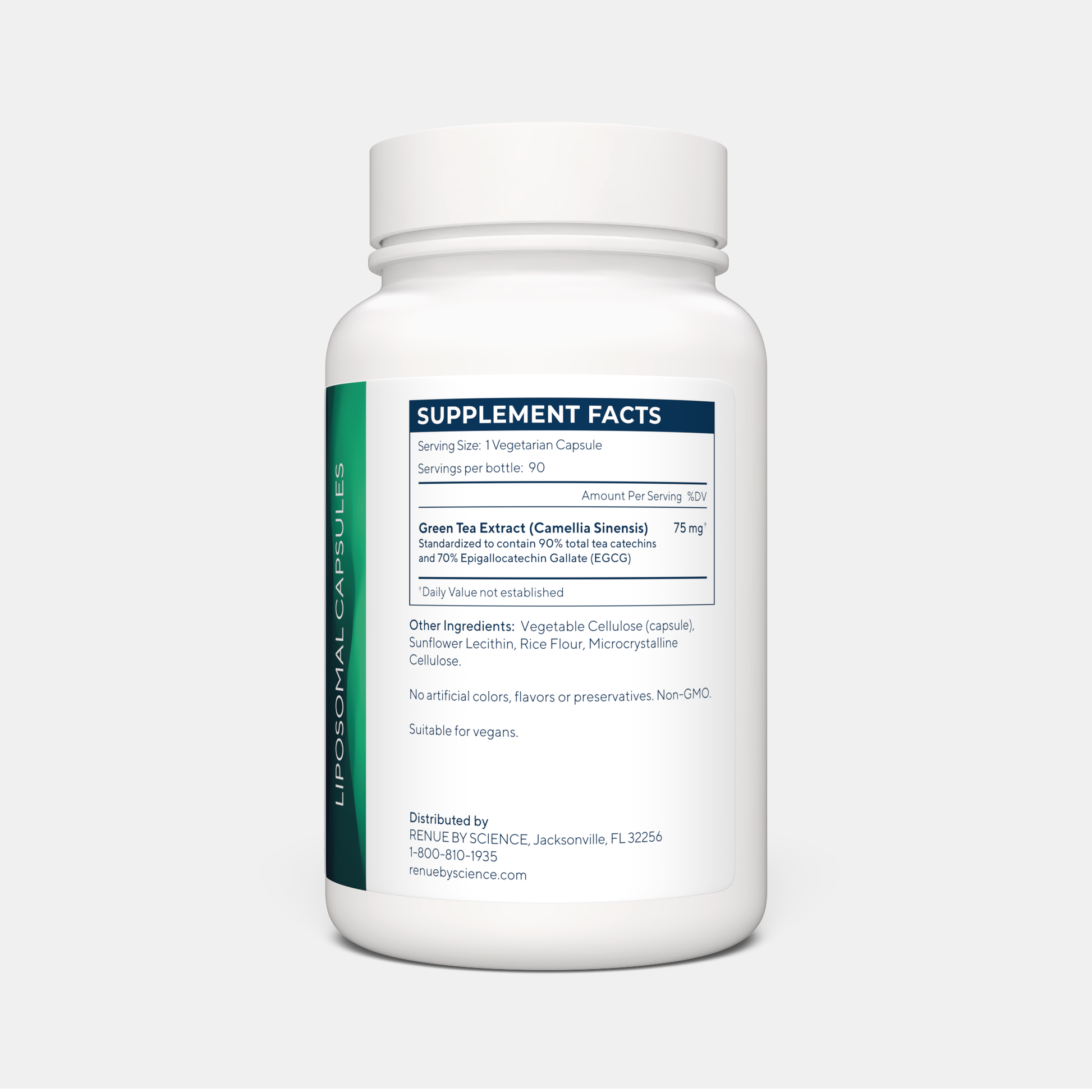 Renue By Science’s LIPO EGCG uses dry liposomal technology to surround each molecule with phospholipids—helping it survive digestion and reach your bloodstream intact.