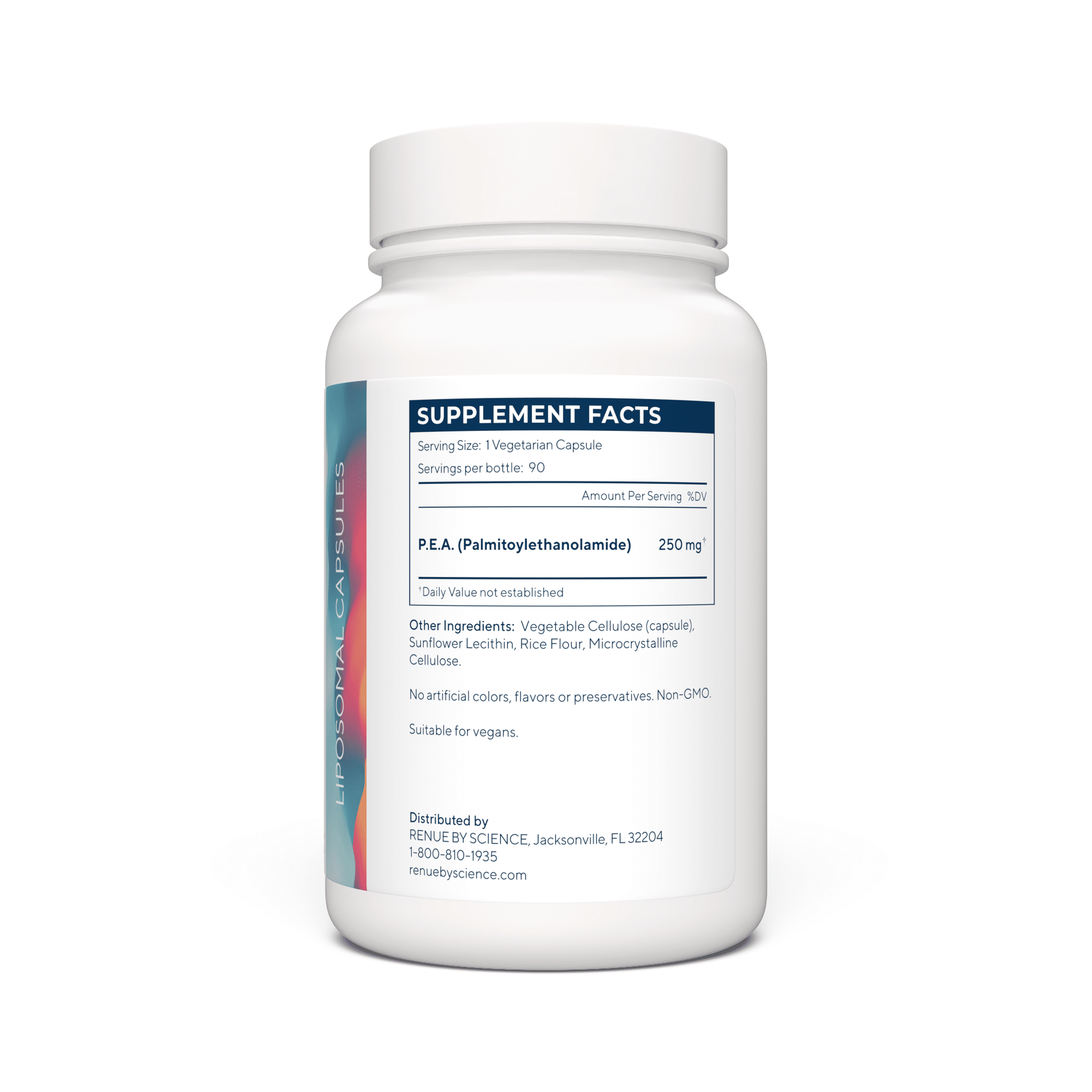 Standard P.E.A. has poor absorption and low bioavailability, and its levels in the blood quickly diminish after ingestion. To address this issue, LIPO P.E.A. uses an advanced liposomal delivery system designed to improve the bioavailability, created for better absorption, and a slower release into the bloodstream.†