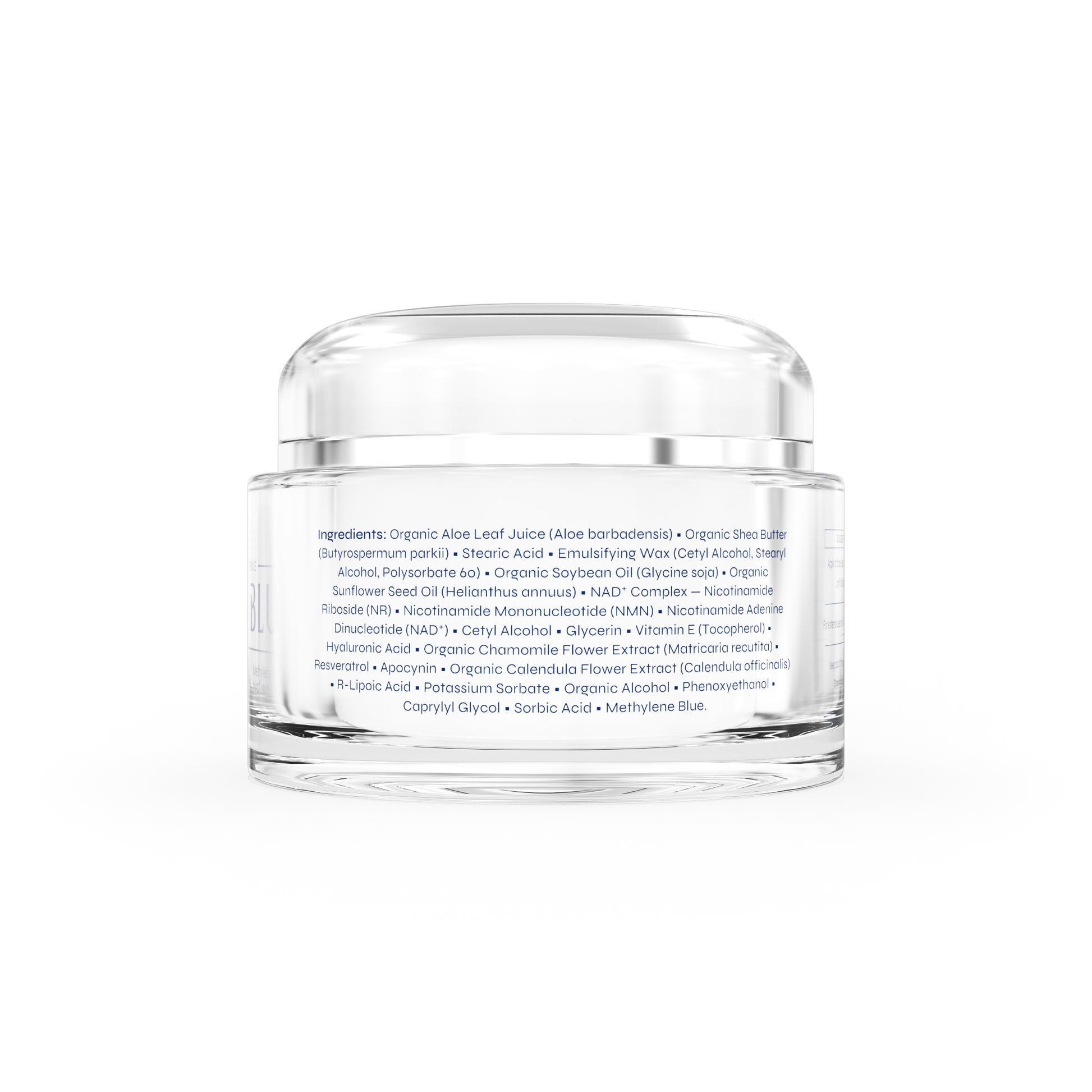 The NAD+ Complex, a powerful blend of NAD+, NMN, and NR. As we age, NAD+ levels in our skin naturally decline, contributing to the visible signs of aging such as thinning, wrinkling, and uneven skin tone.