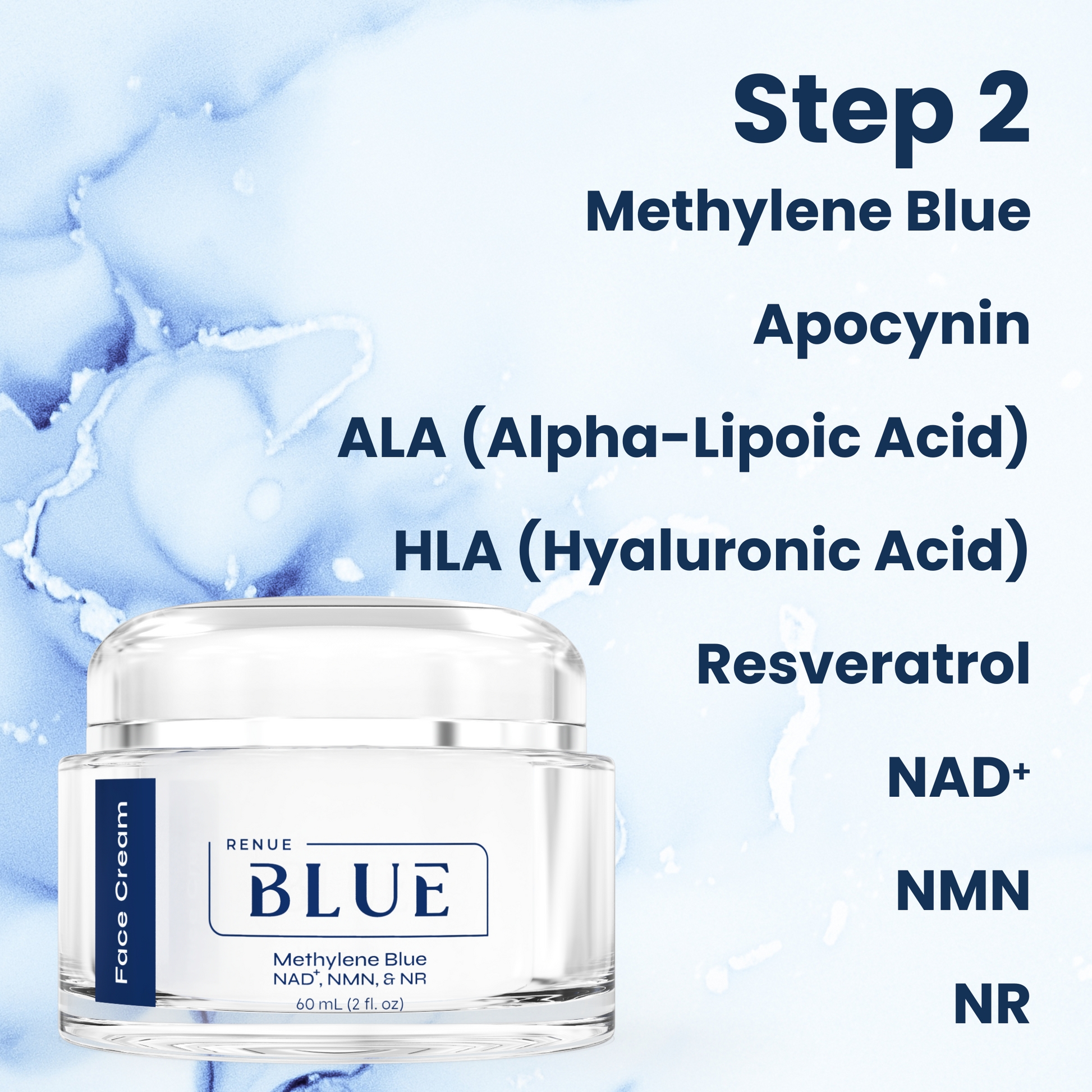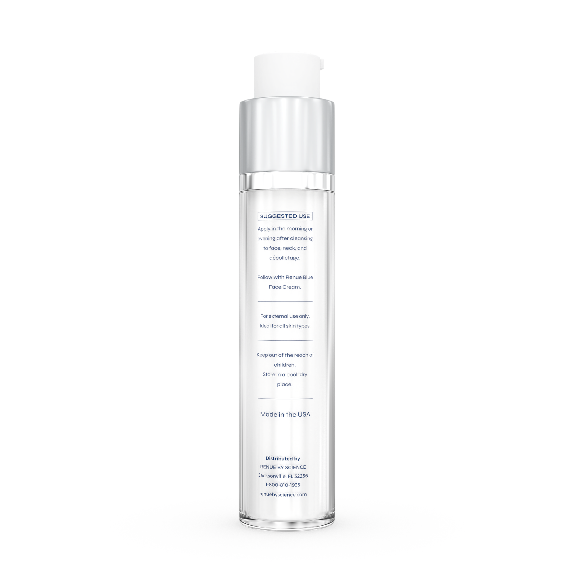 The two-part system combines the latest advancements in skincare science to deliver unrivaled anti-aging benefits. This innovative protocol includes the Renue Blue Serum (Step 1) and the Renue Blue Cream (Step 2).